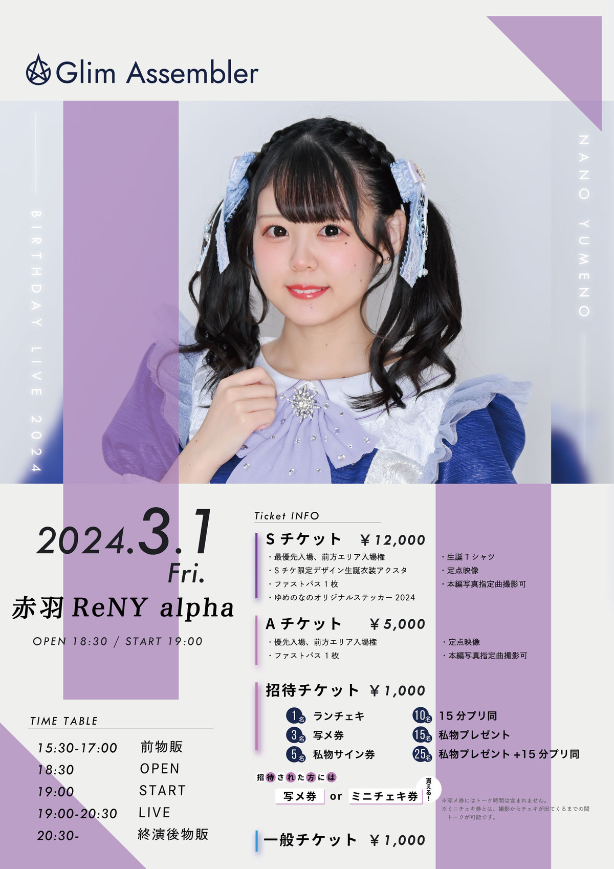■Sチケット 12,000円 / Aチケット 5,000円 一般チケット/ 1,000円 / 招待チケット 1,000円 / 当日券 +500円(各別途1D)