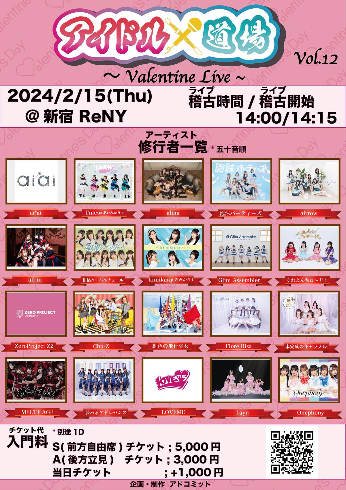 Schedule BACK TO LIST 2024.2.15[Thu] 新宿ReNY 『アイドル道場 vol.12』Valentine Live 『アイドル道場 vol.12』Valentine Live ■新宿ReNY ■開場14:00 / 開演14:15 VENUE 新宿ReNY TIME 開場 / 0:00 開演 / 0:00 TICKET 前売 未定 / 当日 未定 ACT