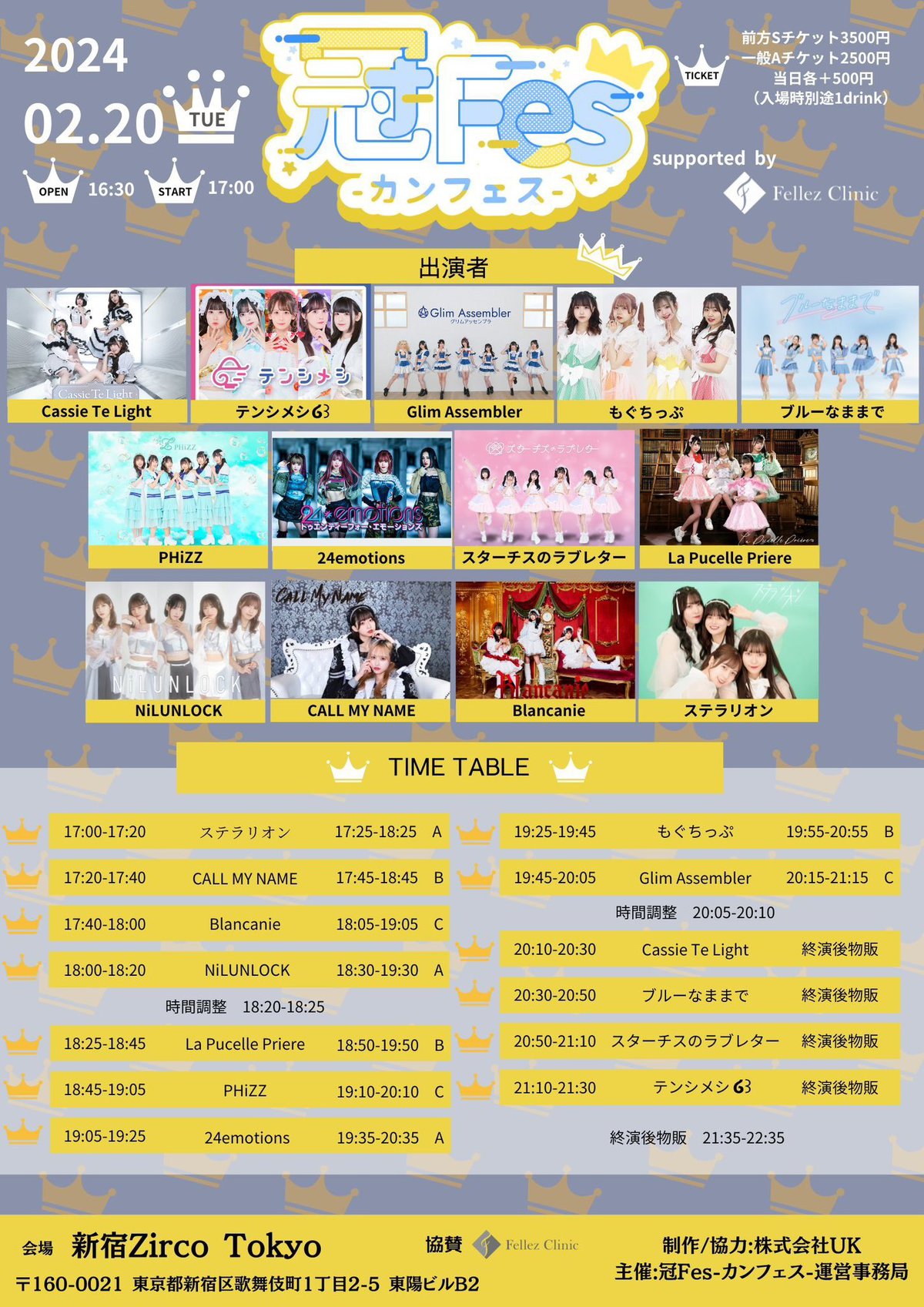 Schedule BACK TO LIST 2024.2.20[Tue] 新宿Zirco Tokyo 冠Fes-カンフェス- 『冠Fes-カンフェス-』 ■Zirco Tokyo ■OPEN16:30 / START17:00 VENUE 新宿Zirco Tokyo TIME 開場 / 0:00 開演 / 0:00 TICKET 前売 未定 / 当日 未定 ACT