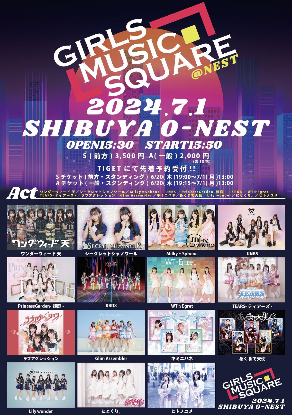 Schedule BACK TO LIST 2024.7.1[Mon] Spotify O-nest GIRLS MUSIC SQUARE @ NEST ■Spotify O-nest ■開場15:30 / 開演15:50 VENUE Spotify O-nest TIME 開場 / 0:00 開演 / 0:00 TICKET 前売 未定 / 当日 未定 ACT