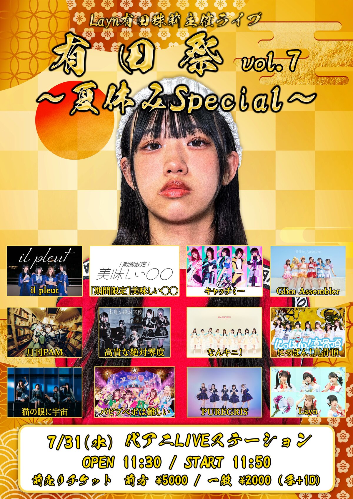 Schedule BACK TO LIST 2024.7.31[Wed] 代アニLIVEステーション Layn有田珠莉主催 『有田祭 vol.7~夏休みSpecial~』 ■代アニLIVEステーション ■OPEN 11:30 / START 11:50 VENUE 代アニLIVEステーション TIME 開場 / 11:30 開演 / 11:50 TICKET 前売 未定 / 当日 未定 ACT