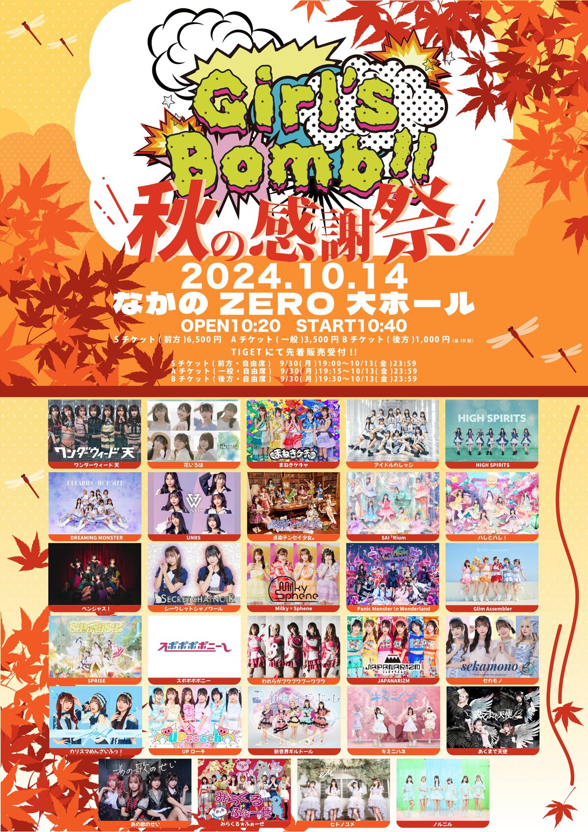 ■Sチケット(前方)6,500円 Aチケット(一般)3,500円 Bチケット(後方)1,000円(各(各1D別)別)