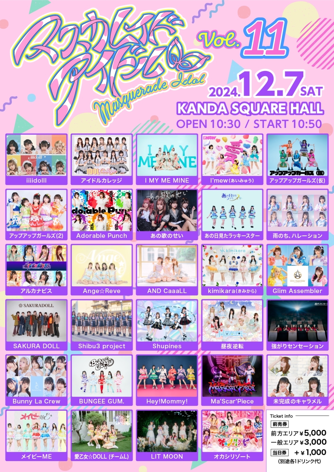 ■前方チケット¥5,000/一般チケット¥3,000/当日+各1000円(各1D別)