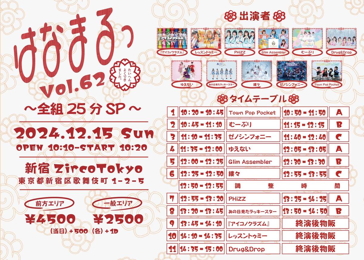 ■前方4500円/一般2500円/当日+500円(各1D別)