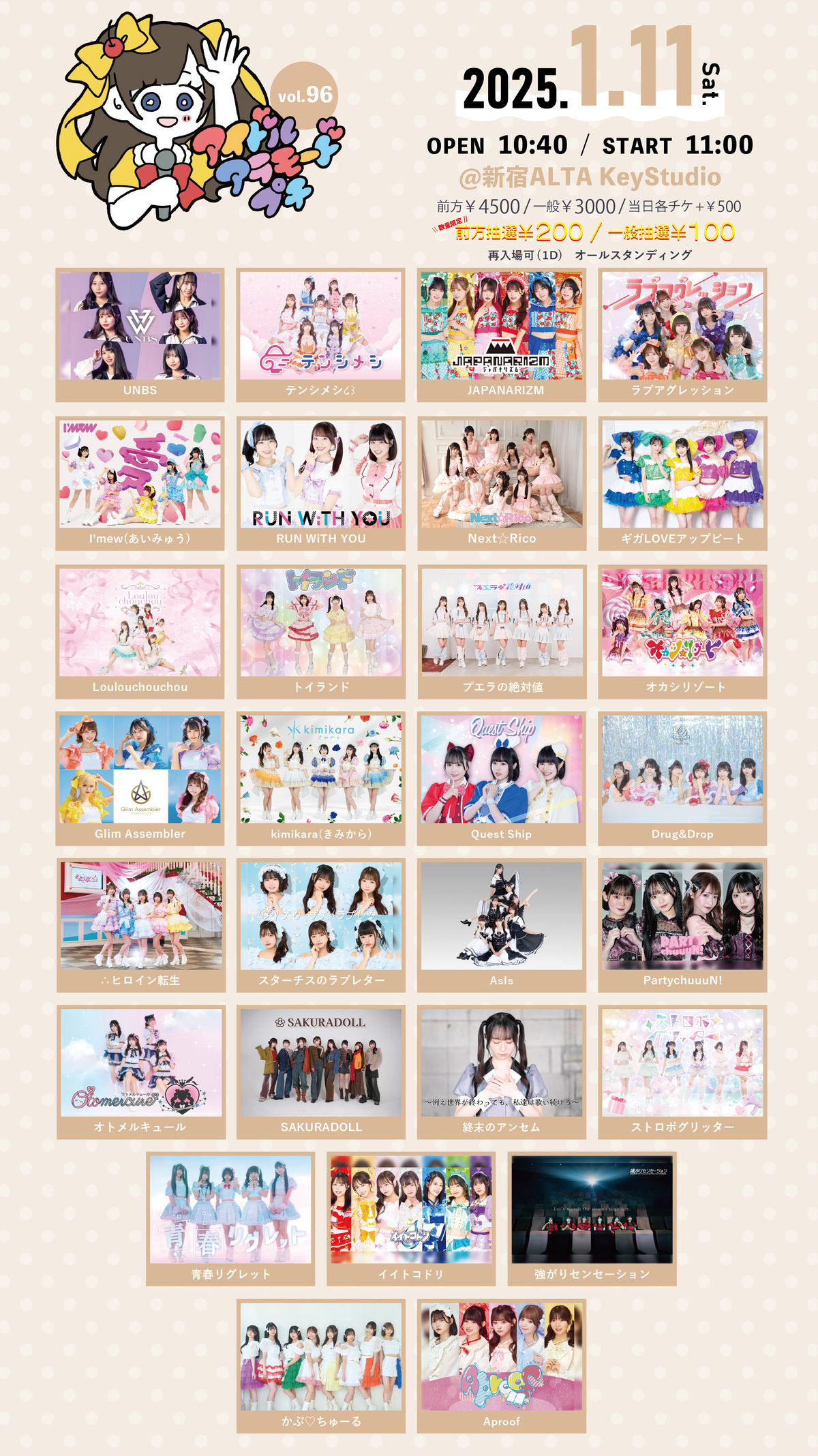 ②前方エリア4500円/一般エリア3000円(当日各+500円)各チケット別途1D