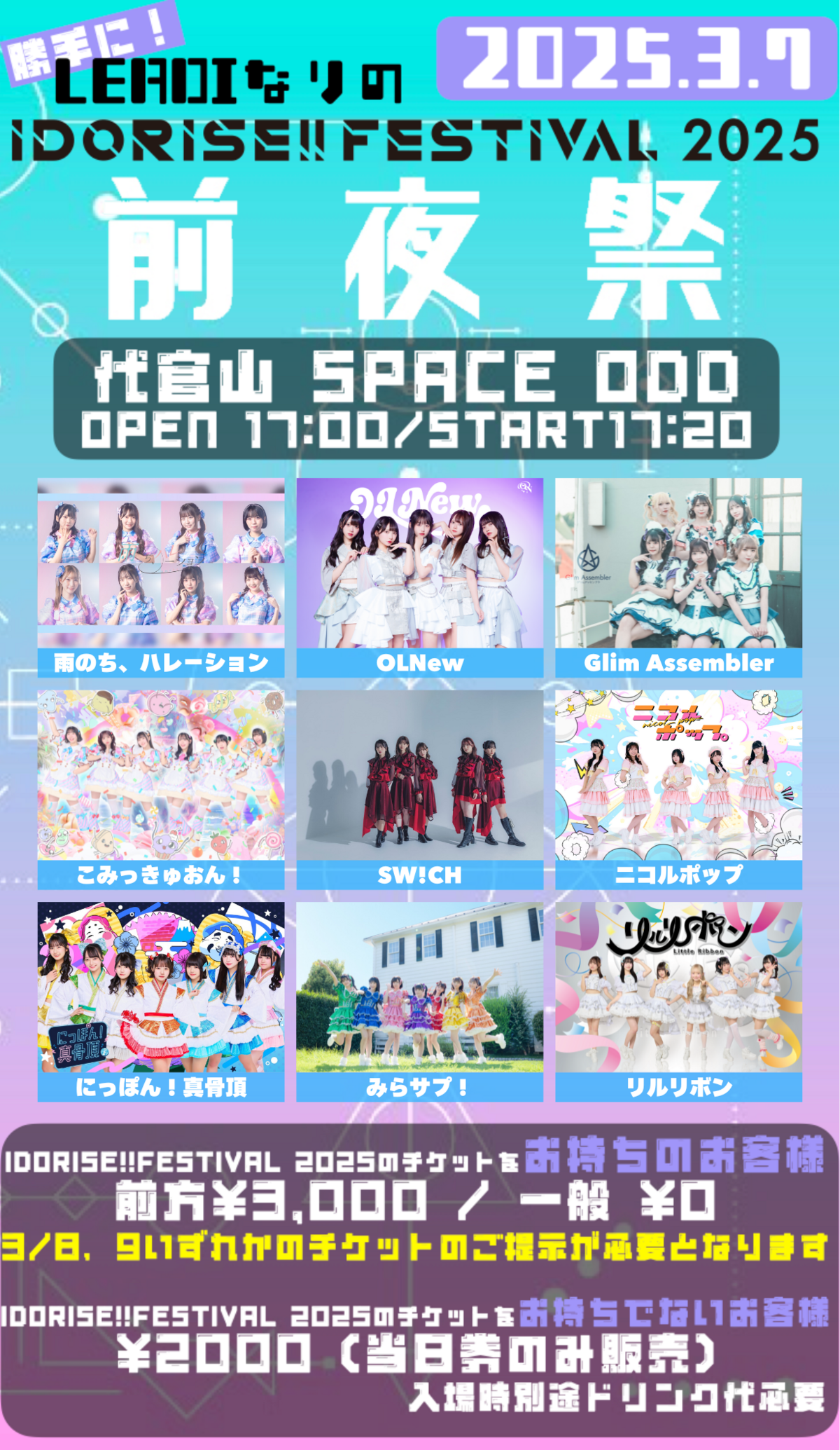 (※前方エリア、一般入場のお客様は入場時にIDORISE!! FESTIVAL 2025の3/8、9いずれかのチケットのご提示が必要となります)