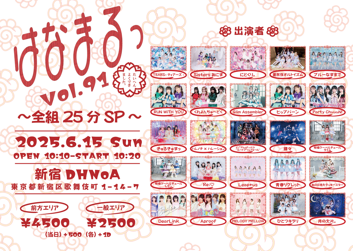 ■前方4500円/一般2500円/当日券+500円(各1D別)