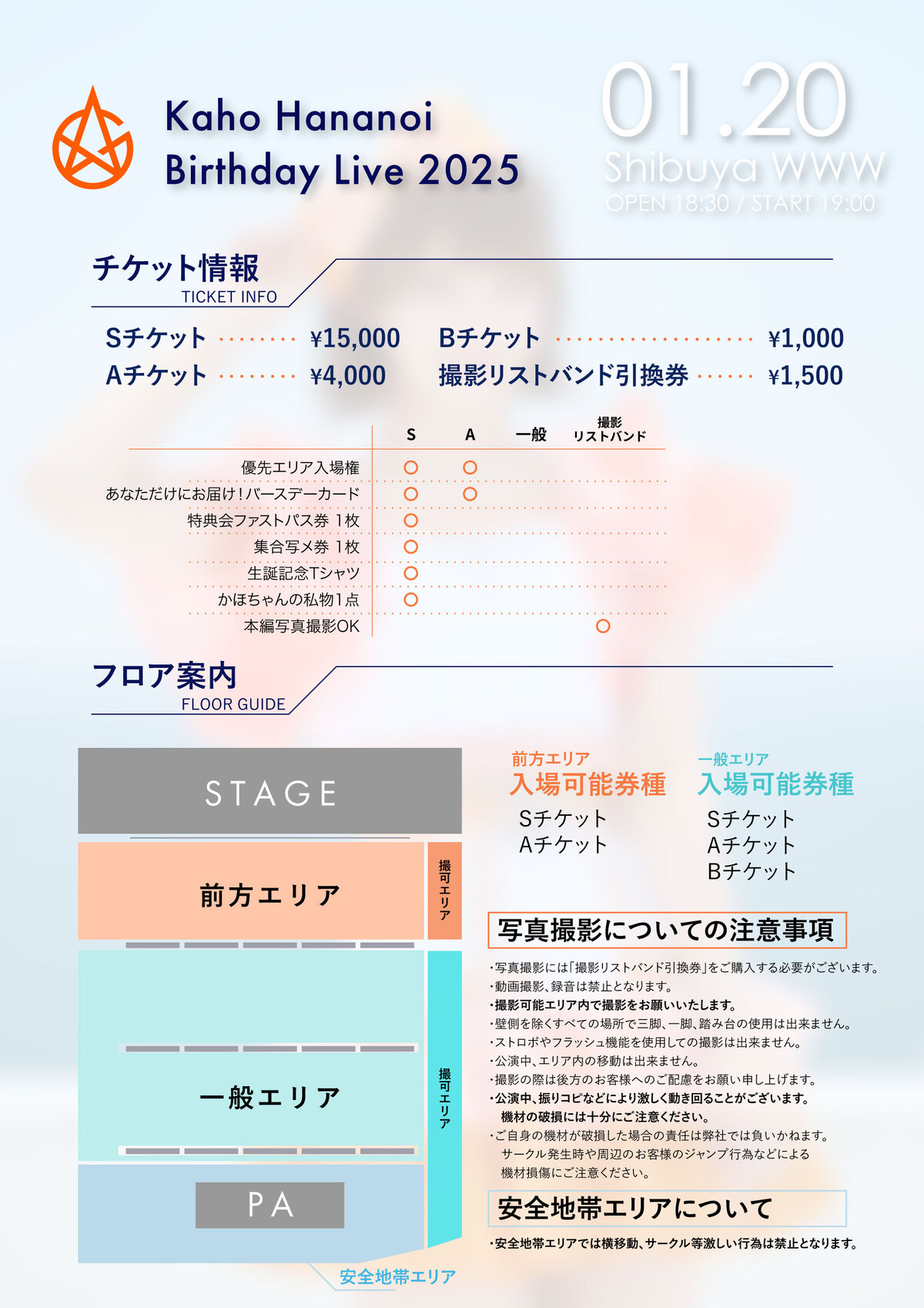 前方エリアはS、Aチケットのお客様のみ観覧可能です。